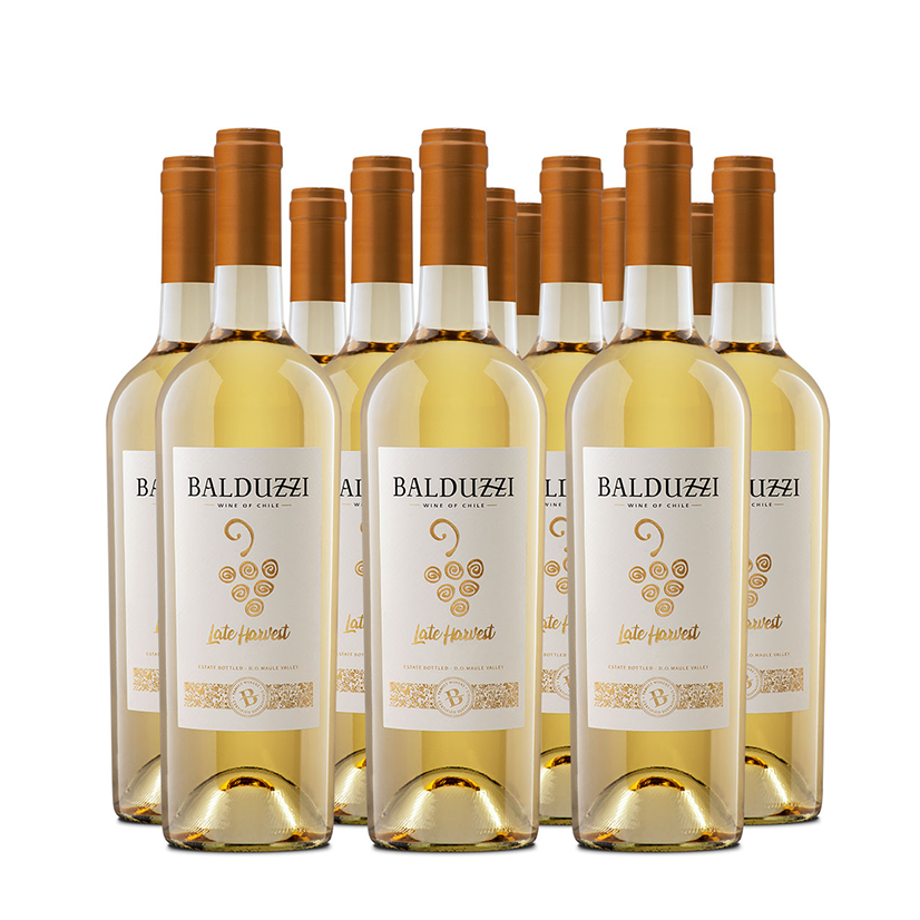 Caja de 12 botellas de 750cc c/u. Vino blanco dulce.
